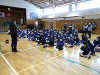 先生の自己紹介では、先生の住んでいる国や地域のスポーツチームの紹介などが画像で紹介され、参加した生徒からは、「すごい!」「きれい!」など、おどろきや感動の言葉が聞かれました。